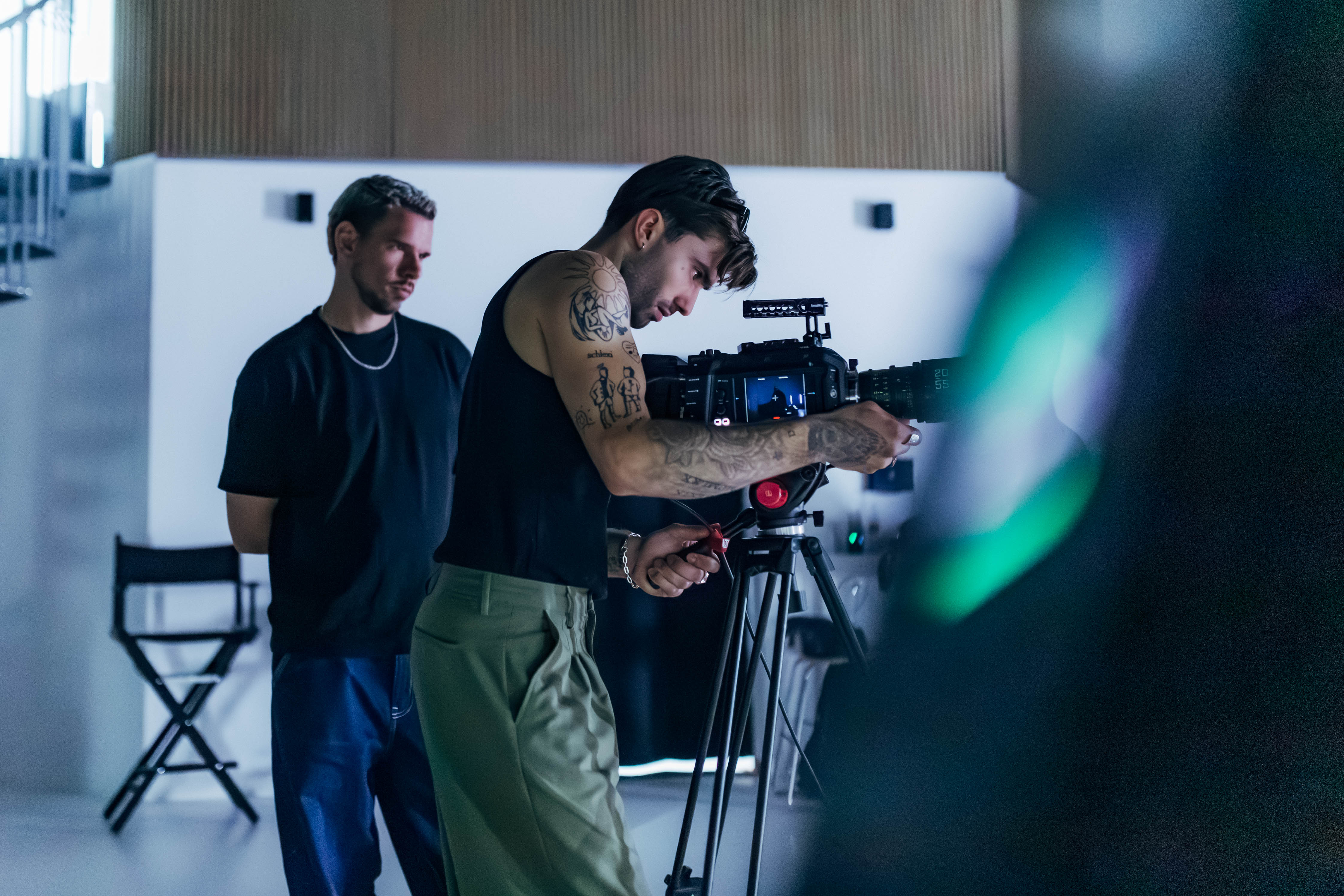Für den Dreh verwandelte sich unser Studio in eine kreative Kulisse voller Licht, Bewegung und Atmosphäre. Wir durften einen Blick hinter die Kulissen werfen und miterleben, wie das Künstler-Duo gemeinsam mit Darius Büsch beeindruckende Bilder für ihr neues Musikvideo schuf.