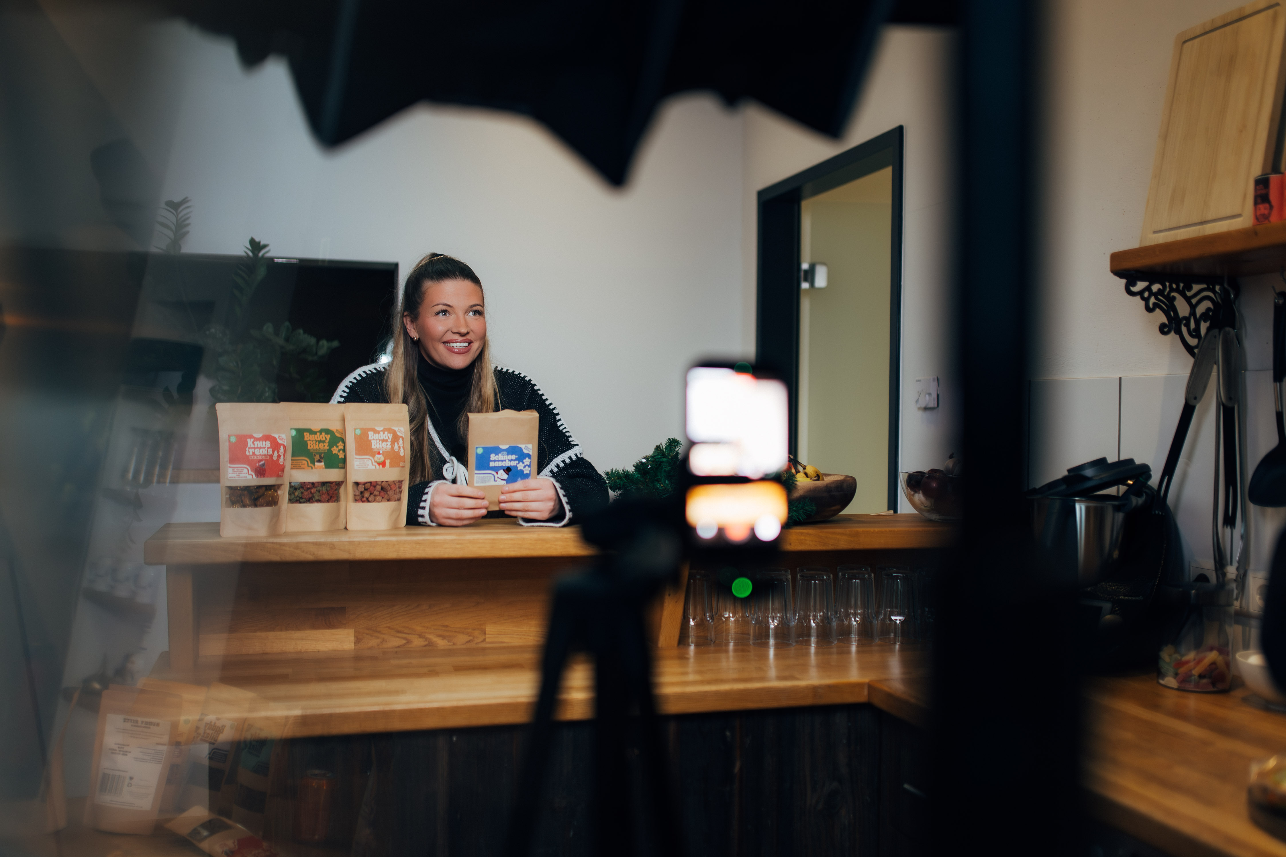 Unsere „Alm“-Küche wurde kürzlich zum Drehort für die hochwertige Hundenahrungsmarke Knusperpfote. Vor der Kamera präsentierte Leonie die Produkte sympathisch und authentisch. Das junge Startup aus Wuppertal, gegründet von Mike Dahlaus, steht für gesunde Hundenahrung ohne versteckte Zutaten, transparent, ehrlich und mit viel Liebe zum Detail. Alle Produkte werden mit großer Sorgfalt in Deutschland hergestellt. Wir freuen uns besonders, wenn unsere Küche nicht nur als Pausenräume genutzt wid, sondern sich in kreative Filmsets für starke Marken und tolle Produkte verwandelt. Vielen Dank an Knusperpfote für das Vertrauen in unser Studio.